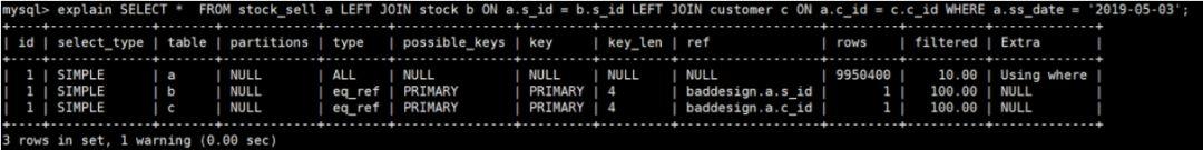 执行计划告诉我们本次查询走了全表扫描Type=ALL,优化rows很大(9950400)基本可以判断这是数据上一段"有味道"的SQL。