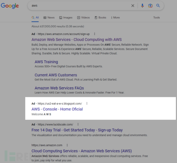 Bleeping Computer 网站披露,潜伏一个新的钓鱼网络犯罪活动将钓鱼网站隐藏在谷歌搜索结果中,以窃取亚马逊网络服务(AWS)用户的网站登录凭据。