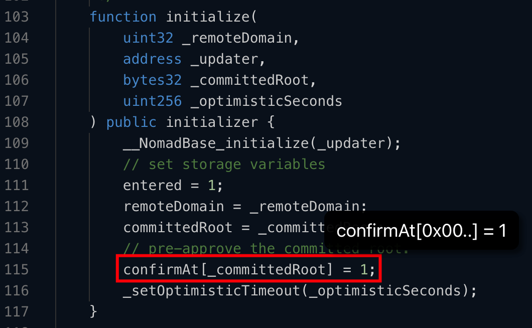 Replica合约在交易0x53fd9中被错误地初始化了,其中“committedRoot”被初始化为0。