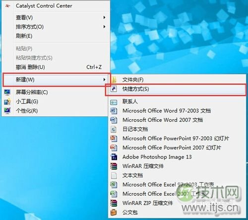 1、如图所示,机快捷键在Windows 7桌面上空白处右键,菜单中新建快捷方式