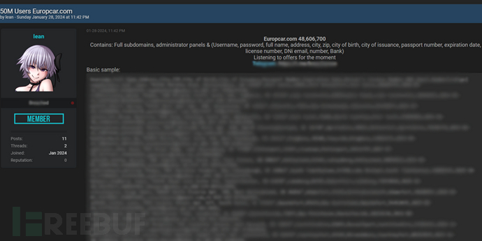 Europcar是数据一家总部位于法国巴黎的欧洲汽车租赁公司,为全球140个国家提供租赁服务。泄露该公司拥有近9000名员工,为人2022年报告收入为14亿欧元,欧洲折合人民币108亿。