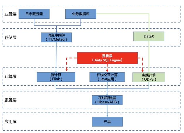 流批处理不能复用,ODPS和Blink/Flink的SQL标准不一致,他们的底层调度和数据处理逻辑也有根本的差别,一个是以MR作为核心的批处理方式,一个是以Flink/Blink为核心的流处理。有些流批处理场景需要调用HSF接口,调用HSF接口,在Java Spring环境里,是信手拈来的事情,但到了ODPS/Flink环境里,就变得额外的免费源码下载一个大挑战,甚至不可实现,因为在ODPS/Flink是无法加载或者极难使用Spring容器的,这就会让开发在面对复杂流处理场景,更倾向使用自己熟悉的Java环境,但同时也意味失去ODPS/Flink那种贴近业务表达的SQL表达。计算处理除了流批处理,还更广泛存在在线交互计算,这个和流处理异步处理还不太一样,是需要同步计算并返回结果,这通常是在Java环境开发HSF接口,但如果你要对外同时提供三种能力:流计算、批计算和在线计算的时候,就面临需要三端开发,流计算和批计算尚且还有SQL,虽然不太一致,但至少大同小异,但在线交互计算就是需要纯Java开发了,将SQL翻译成Java代码可是个不小的挑战。面对三种计算模式,较低的研发效率、不可控的企商汇数据质量,以及臃肿数据接口服务的困境,三端(流计算、批计算、在线计算)一体计算的想法自然油然而生,在20年做价格力业务时候,我就一直思考有什么解法,其实,这个也是大数据架构经常面临的问题,业界达成共识,可以归纳两种方案: