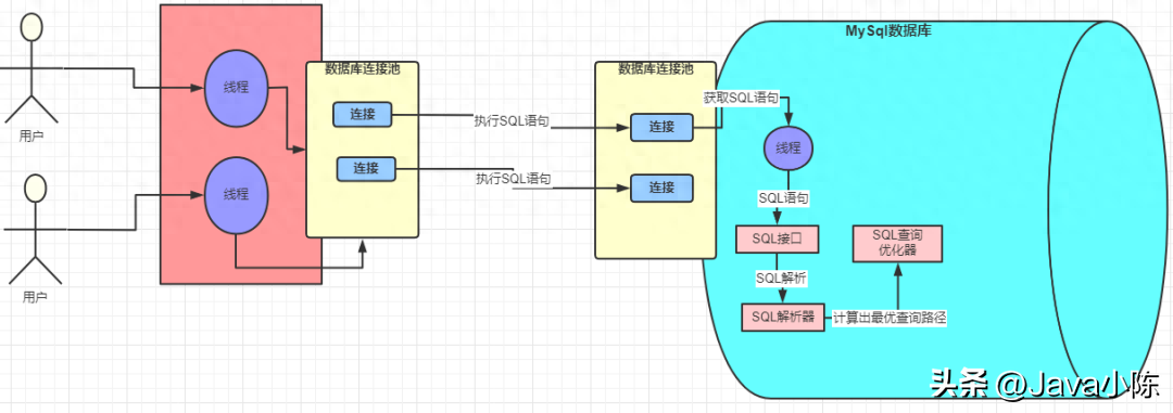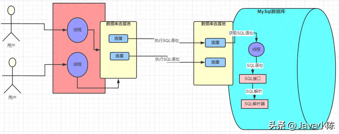 其实 MySQL 的架构体系中也已经提供了这样的一个池子,也是数据库连池。双方都是通过数据库连接池来管理各个连接的,这样一方面线程之前不需要是争抢连接,更重要的是不需要反复的创建的销毁连接。