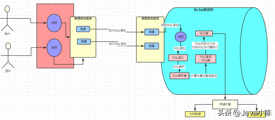 至此系统和 MySQL 数据库之间的连接问题已经说明清楚了。那么 MySQL 数据库中的这些连接是怎么来处理的,又是谁来处理呢?
