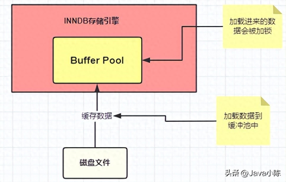 Buffer Pool (缓冲池)是 InnoDB 存储引擎中非常重要的内存结构,顾名思义,缓冲池其实就是类似 Redis 一样的作用,起到一个缓存的作用,因为我们都知道 MySQL 的数据最终是存储在磁盘中的,如果没有这个 Buffer Pool 那么我们每次的数据库请求都会磁盘中查找,这样必然会存在 IO 操作,这肯定是无法接受的。但是有了 Buffer Pool 就是我们第一次在查询的时候会将查询的结果存到 Buffer Pool 中,这样后面再有请求的时候就会先从缓冲池中去查询,如果没有再去磁盘中查找,然后在放到 Buffer Pool 中,如下图