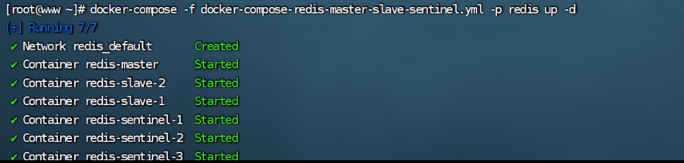 复制docker-compose -f docker-compose-redis-master-slave-sentinel.yml -p redis up -d1.