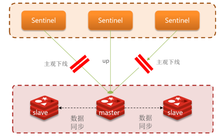 主观下线:如果某sentinel节点发现某实例未在规定时间响应,则认为该实例主观下线。客观下线:若超过指定数量(quorum)的sentinel都认为该实例主观下线,则该实例客观下线。quorum值最好超过Sentinel实例数量的一半。