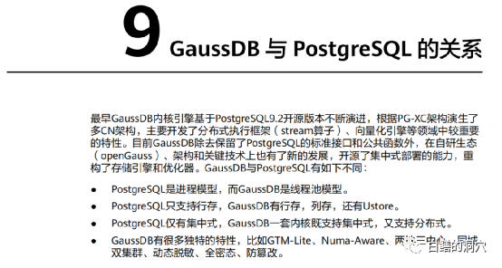 针对网上对Gaussdb的质疑,认为Gaussdb仅仅是PG套壳,实际上也是不够严肃的。实际上在Gaussdb的官方文档中也没有遮遮掩掩,直接表明了Gaussdb与PG以及PG-XC的关系。Gaussdb与PG的主要区别在于进程模型与线程池模型的差异,以及Gaussdb在PG的ASTORE基础上自研了内存引擎,列存和USTORE。目前在openGauss中USTORE还是处于BETA版本,而在商用的Guassdb上,USTORE已经正式商用了。