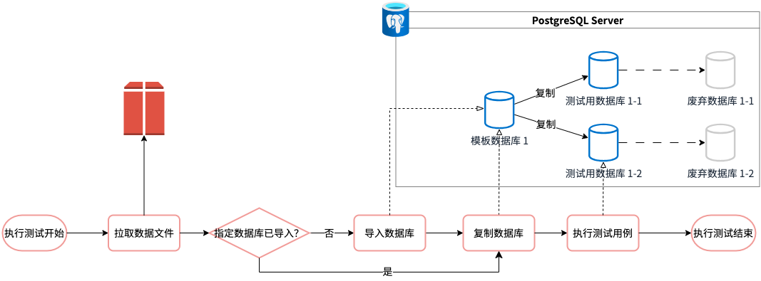 1.使用模板数据库为了加速测试,我们在PostgreSQL上采用模板数据库(Template Database)。同时把数据文件的Hash片段作为Database的名字,测试框架代码就能判断这份数据文件是否已经被导入过。倘若已导入,则跳过导入步骤,直接在PostgreSQL内复制一份数据库供测试使用。