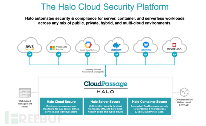 三大模块:Fidelis CloudPassage Halo是一个单一平台,但包含3个模块,包括Halo Cloud Secure、Halo Server Secure和Halo Container Secure,均按使用级别授权。监控与合规功能:对本地、公有云、混合云环境中的工作负载进行监控并作合规检查。基础安全功能:文件完整性监控、漏洞扫描与修复、基于日志的入侵检测是其中比较突出的功能。身份管控:自动识别给定工作负载或配置是否以及何时违反相应策略,这是一个很多同类产品不具备的差异化特点。云平台支持:支持在AWS、Azure和GCP等云环境中运作。优点: