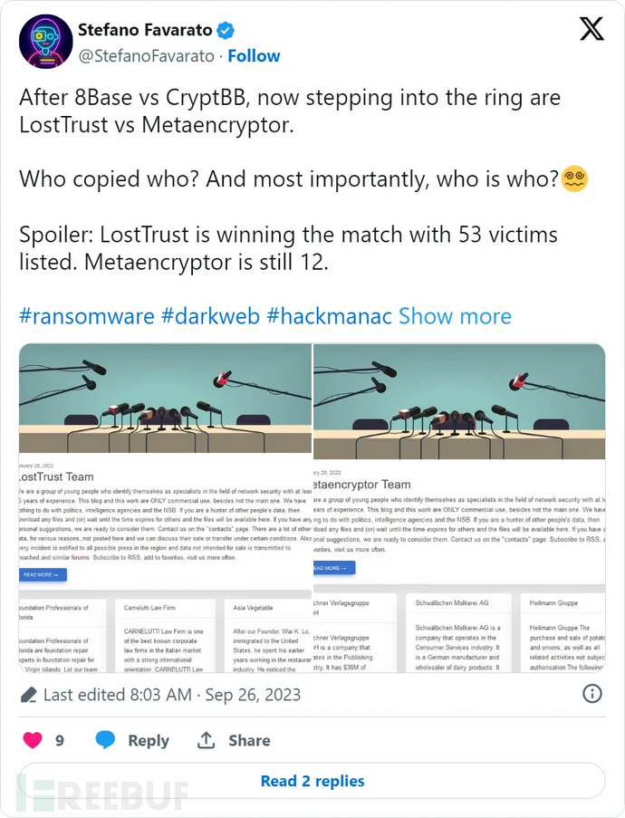MetaEncryptor和LostTrust都在其数据泄露网站上的描述中写道了下列内容: