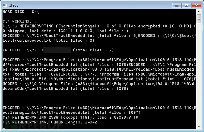 研究人员还发现,LostTrust [ VirusTotal ] 和 MetaEncryptor [ VirusTotal ] 所使用的加密程序几乎是相同的,而且只是在勒索信息、嵌入式公共密钥、勒索信息文件名称和加密文件扩展名方面进行了一些微调而已。