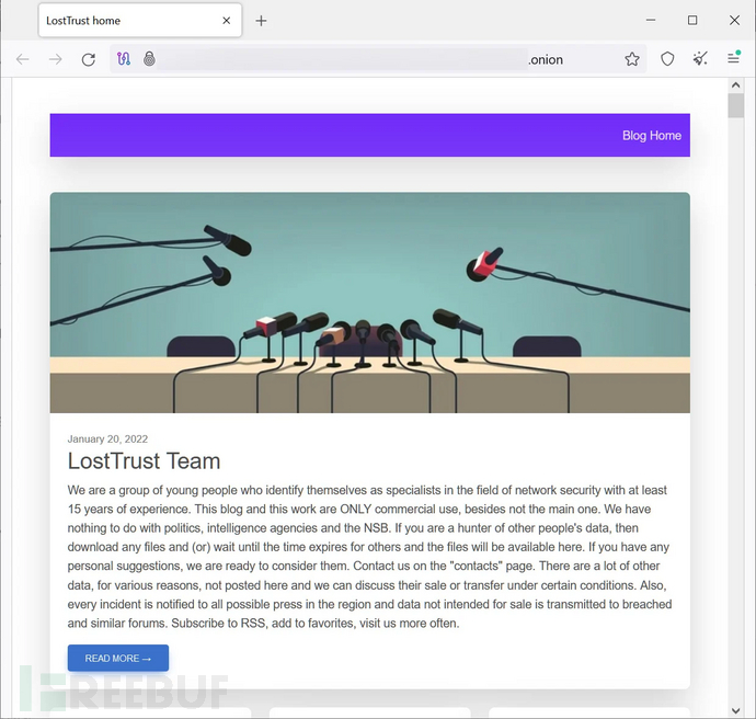使用数据泄露网站来威胁和震慑目标组织跟其他的勒索软件攻击活动一样,LostTrust也利用了Tor数据泄露网站来威胁和震慑受影响的组织或企业,并威胁如果不支付数据赎金,便会将他们的数据泄露到互联网中。