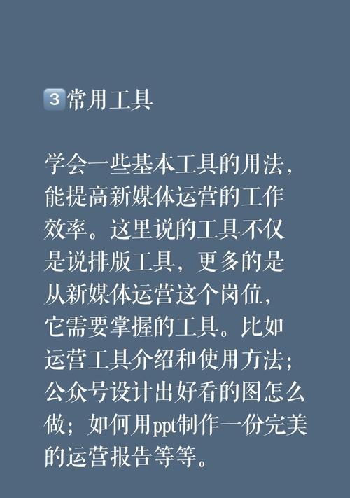 现代社会的发展使得电脑已经成为我们生活中必不可少的工具。想要更好地利用电脑,握多提升自己的力助技能,自学新媒体教程无疑是打造电脑电脑一个非常有效的途径。在这篇文章中,个人我将推荐一些适合电脑爱好者自学的推荐体教新媒体教程,并带领大家掌握多种技能,自学种技让电脑成为我们的新媒得力助手。