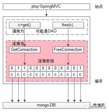 当服务启动的时候,先建立好若干连接Array[DBClientConnection];当请求到达的时候,再从Array中取出一个,执行下游操作,执行完放回;从而避免反复的建立和销毁连接,以提升性能。