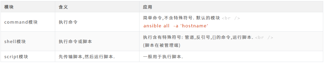 这个模块是默认模块,ansible不加上模块,默认就使用这个模块