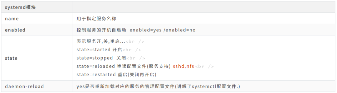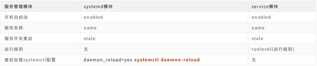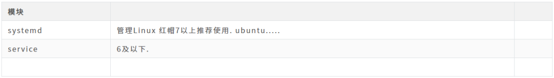 ansible backup -m systemd -a name=rsyncd state=restarted2)service 了解