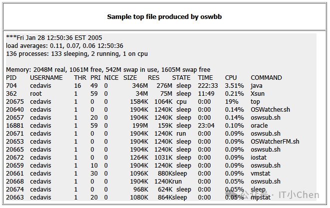 1.1 OSWatcherOSWatcher(OSW)包含一个内置的分析器,可以自动分析收集到的数据,主动查找cpu、内存、io和网络问题。建议所有用户安装并运行OSW,因为它对于查看操作系统上的问题非常有价值,而且开销很小。
