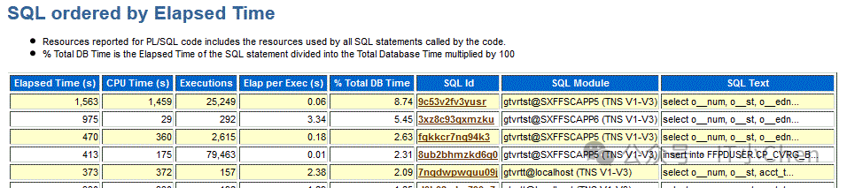 AWR还可以用于深入查看特定的sql语句。如果问题在会话级别,则可以在尝试进行额外的10046或sql trace诊断之前获取并分析AWR报告。此信息也可与ASH报告结合使用(见下文)。