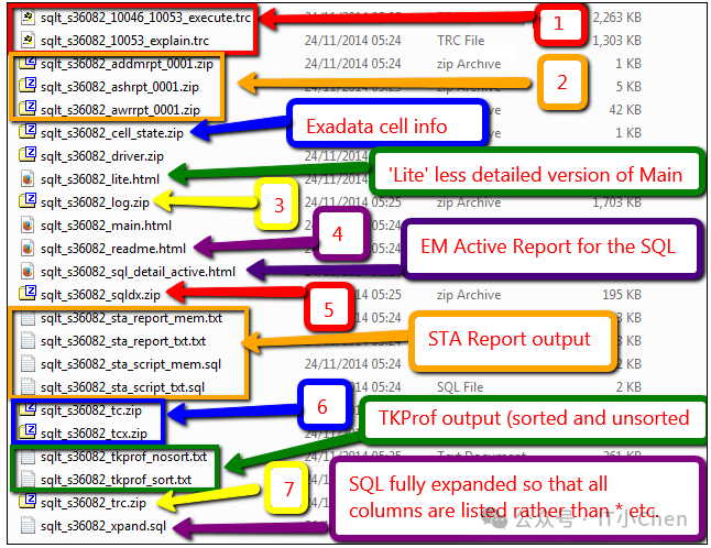以下是SQLT收集的文件类型的带注释列表(在本例中使用XECUTE方法):