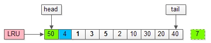 如上图,假如管理缓冲池的LRU长度为10,缓冲了页号为1,3,5…,40,7的页。