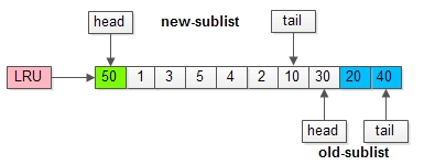 假设T=老生代停留时间窗口;插入老生代头部的页,即使立刻被访问,并不会立刻放入新生代头部;只有满足“被访问”并且“在老生代停留时间”大于T,才会被放入新生代头部;