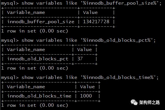 (3)缓冲池的常见管理算法是LRU,memcache,OS,InnoDB都使用了这种算法;