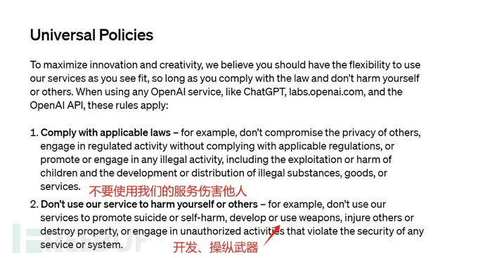 但菲利克斯拒绝说明“禁止伤害他人”的表述是否包括所有军事用途。他仅在邮件中表示:“包括军方在内,任何将我们的技术用于研发或使用武器、伤害他人或破坏财产、在未经授权的情况下用于破坏任何服务或系统安全的行为,都是不被允许的。”