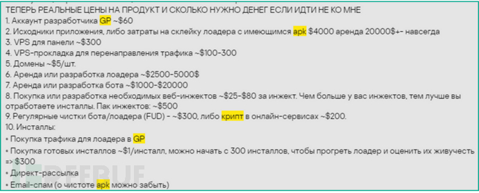 然而,如果网络犯罪分子想要购买加载程序源代码,价格会立即飙升,达到价格范围的上限。