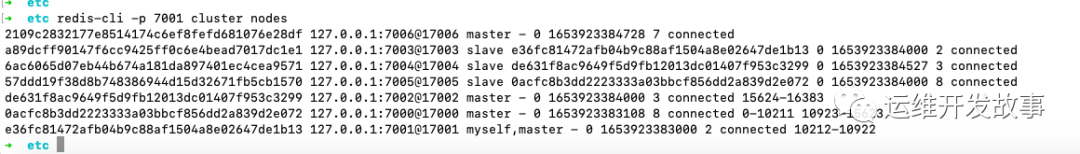 重新分配后的结果查询 redis-cli -p 7001 cluster nodes。