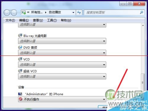 5、假如只是免费信息发布网播放要去掉某一个设备的自动播放,可以拉到最后面,禁止将具体设备的统位下拉菜单选择【不执行操作】