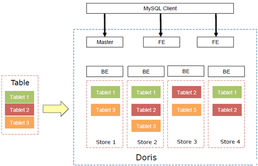 在工具方面,Doris在FE模块中实现了兼容MySQL协议,方便用户使用标准的MySQL客户端或各种语言的类库进行连接,对各种工具的支持都非常好。在数据库开发方面[3] [4] ,我们可以无缝使用DBeaver、DataGrip、Navicat等主流开发工具;在编程应用方面[5] [6] ,Doris完全支持MySQL的JDBC和ODBC接口,可以支持C、Python、Java、Shell等开发语言;在BI应用方面,Doris支持帆软BI、观远BI、永洪BI、Tableau等各种敏捷BI软件;在ETL调度方面,Doris支持Kettle、DolphinScheduler等主流软件。