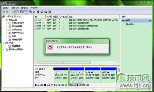 第二步、区过在“计算机管理”窗口的系新的s新左侧,我们点击“磁盘管理”,让系统计算磁盘分区情况。