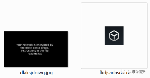 勒索软件将两个文件放入 %TEMP%:一个是加密文件的图标(名为“fkdjsadasd.ico”),另一个是用作背景图像的 .jpg 文件(名为“dlaksjdoiwq.jpg”) :