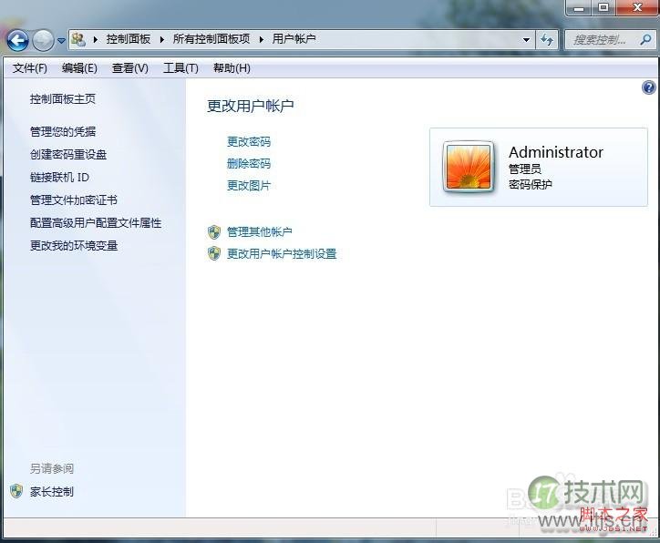 五、创建后将看到“更改用户帐户”项内容已经变为“更改密码”和“删除密码”了。这说明 你的密码已经设置成功。